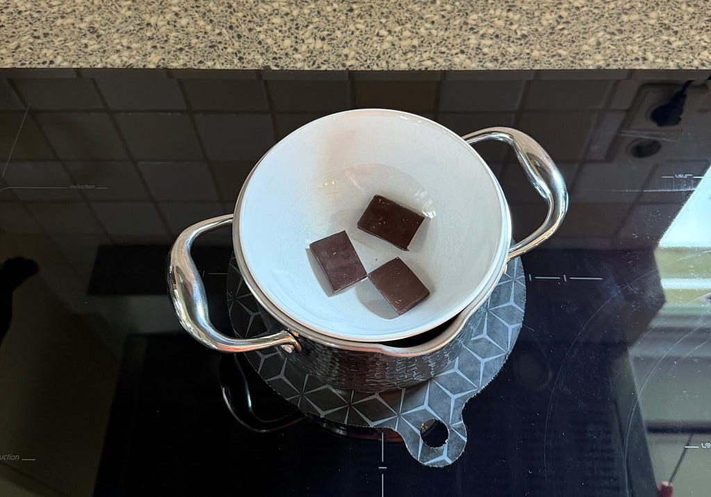 - Heat some water in a pan and place a bowl on top (make sure it doesn’t touch the water).